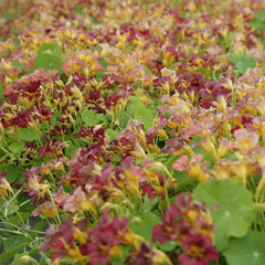 Diese einjährige, kriechende Pflanze wächst etwa 100 cm lang und bildet wunderschöne, dichte Bestände. Ihre essbaren Blüten variieren in den Farbtönen von Altrosa bis Violett mit gelbem Herzen. Sie verleihen dem Garten einen Hauch von Romantik.